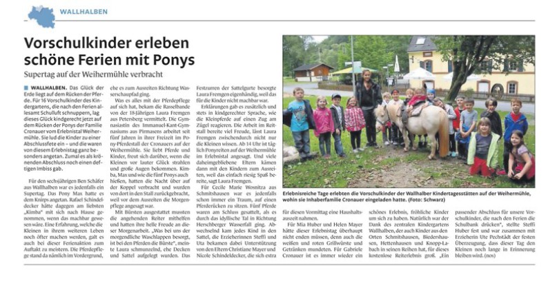 Auf dieser Seite informieren wir Sie regelmäßig über Neuigkeiten im Weihermühle Erlebnistal.